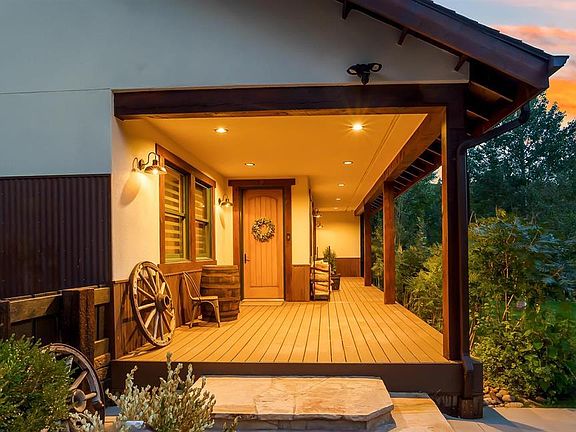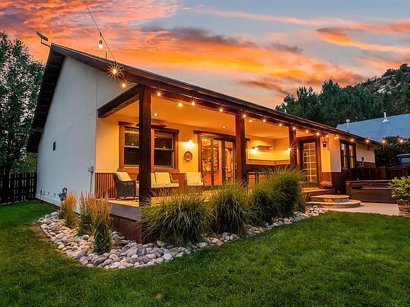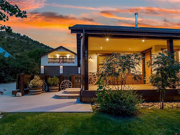 Stunning one of a kind single level luxury home in the town of Dolores on 5 city lots! This high quality home was custom built for a personal residence with top quality finishes and lives like a luxury home in Telluride. As you walk into the main home via a graceful covered porch and custom wood entry door, you are greeted by vaulted ceilings with rustic wood beams and gorgeous wood floors. Gourmet kitchen with granite and maple butcher block countertops, White Oak cabinets, Wolf stove/oven, and plenty of bar seating for guests. 3 bedrooms in the main home including a primary suite located on the west side of the home and two additional large bedrooms on the east side sharing a bath. Master bath has extra high cabinets with granite tops, walk-in closet, a safe, bronze fixtures, and double shower heads. The exterior is low maintenance stucco, corrugated metal trim and top of the line architectural shingles. Many upgrades in this home including adjustable shades, gas hookup for BBQ, Trex composite decking on the front and back of the home, and mud room for gear and dogs. Walk out to the oversized three + car garage that is large enough to store all your toys! The interior garage space is 29’x39’ with 10'5" overhead doors and 12' ceilings giving you the opportunity to park your boat, RV, or work on your collector cars or other hobbies. Upstairs from the garage with a separate entrance you will find a stunning guest studio complete with a full bathroom with walk in shower, wood burning fireplace, and deck overlooking town. Enjoy your days in the stunning back yard. Not only do you have amazing views, the lush lawn has new sod, mature apple trees, a 9-zone irrigation system, fire pit, hot tub, paver patio, and covered deck. This immaculate luxury home that is walking distance to town. Home can be sold turn key. A furnishings package is available for purchase outside of the sale of the home.