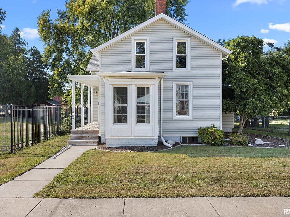 This charming three-bedroom, one-bathroom home perfectly balances small-town convenience with comfortable living. Located just blocks from Morton's famous pumpkin festival and bustling downtown area, you'll enjoy easy access to community events and local amenities while maintaining a peaceful residential setting. The welcoming covered front porch leads into an open-concept main floor that maximizes space and natural flow. The informal dining room seamlessly connects to the kitchen and overlooks a spacious living room featuring beautiful hardwood floors and abundant natural lighting that creates a warm, inviting atmosphere throughout the day. The main floor bathroom conveniently sits just off the kitchen area. Upstairs, three well-appointed bedrooms provide comfortable sleeping quarters. The unfinished basement offers excellent potential, currently serving as a practical laundry and utilities area while providing generous storage space for all your belongings. Outside, the fully fenced yard ensures privacy and security. The detached one-car garage features convenient alley access, making parking and storage effortless. This property sits within a block or two from Morton Memorial Park, ideal for recreational activities and community gatherings, while Morton High School is easily accessible for students. The combination of location, functionality, and charm makes this home an excellent opportunity to call this home!