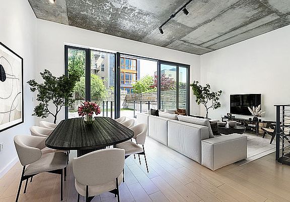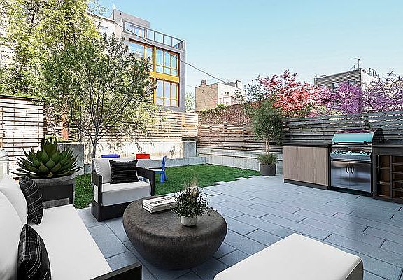 If you are looking for space you'll find plenty of it within this home, located at 207 North 5th Street in Williamsburg's Northside. The well appointed, stylish duplex offers over 2,000 square feet in its' interior, looking out over an additional 1,000 square feet of private outdoor space. Upon entering the main level you'll see a well-oversized living/dining space looking directly onto a stunning cement tiled patio & green yard. The outdoor space is a show-stopper, with a walkway leading to the sunny enclave, enclosed by very cool cement & wood fence walls. This is a place ideal for entertaining guests, playing with kids or pets, while taking in some sun. The interior living/dining room is quite spacious, with an area large enough for an 8 or 10 person dining table, generous room for large couches or furnishings, and a massive kitchen island. The entire interior of the home is defined by custom-made wide plank oak floors (hydronic radiant heated), tall 10' & 12' ceiling heights, cool industrial concrete ceilings, and beautifully finished bathrooms. With 3 large bedrooms, an office, huge walk-in closet, separate laundry room, and tons of storage few similar homes exist in the area. Additional details include German over-sized, double-glazed, tilt & turn windows, Fisher and Paykel washer & dryer, Custom Italian Miton cabinets, Fisher And Paykel appliance package, Ceasarstone countertop and backsplash, Vigo blackened steel fixtures, Garbage disposal, Custom Miton vanity, Duravit bathtub and toilet, Jaclo and Vigo faucet, bath and shower fixtures, and Hand-made cement floor and wall tiles by Cle Tile.