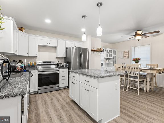 - Kitchen Island, Ceiling Fan(s), Combination Kitchen/Dining, Recessed Lighting, Dry Wall