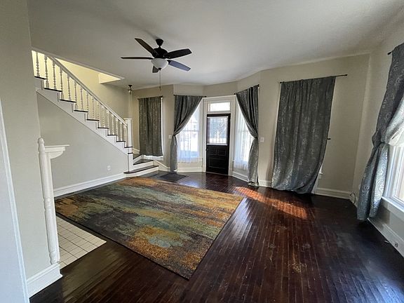 This home was remodeled and restored to its original charm. Beautiful kitchen with all appliances, smooth top range, refrigerator, dishwasher, spindle open staircase in living room with original molding throughout, refinished hardwood floors, soaking tub, lots of storage and closets, old mantel and fireplace. central gas heating unit has been replaced in basement. Covered front porch. Basement storage area Just a few blocks from downtown shopping and the court square. Immediate possession available.