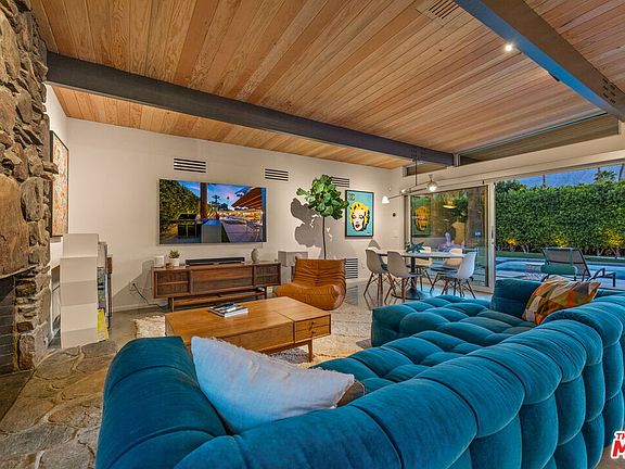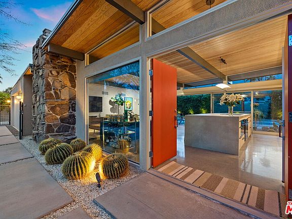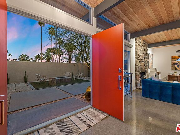 AVAILABLE starting Mid-SEPT. 2025 thru MAY 2026 | Iconic Style, Modern Luxury Seasonal Rental in Central Palm Springs. Step into the Palm Springs dream with this meticulously remodeled 1958 Alexander, where iconic mid-century modern design is seamlessly elevated with today's luxuries. Situated on a private corner lot in the heart of central Palm Springs, this 3 bed | 3 bath home offers jaw-dropping views of the San Jacinto mountains and the ultimate seasonal escape. A gated courtyard with fire pit and lounge area sets the tone for desert living at its finest. Inside, a dramatic double-door entry opens to walls of glass framing the sparkling pool, lush landscaping, and endless skies. The open-concept floor plan with vaulted ceilings creates a light-filled space ideal for entertaining. The designer-renovated kitchen features a custom island, professional-grade appliances, built-in refrigerator, and striking tile backsplash. The principal suite includes a cozy sitting area with fireplace, roller shades, and direct pool access. Newly remodeled bathrooms showcase Zia Cantera Tile, custom cabinetry, and modern fixtures, blending style and comfort. Each guest bedroom offers its own private outdoor patio, while the home is equipped with TVs in all bedrooms and the main living area for convenience. Outdoors, relax on the tanning shelf of the sparkling pool, unwind in the inset spa, or gather with friends around fire features. An outdoor bar, BBQ, covered dining patio, and multiple lounge zones create an entertainer's paradise. Mature hedges, swaying palms, and desert plantings provide resort-like privacy. Additional highlights include a rock-faced indoor fireplace, interior laundry, and ample space to host or simply relax. Just minutes from downtown Palm Springs, this home delivers everything a seasonal renter desires: iconic architecture, resort-style amenities, privacy, and unbeatable location. Escape the cold and indulge in your slice of Palm Springs paradise. HURRY THIS ONE WON'T LAST!