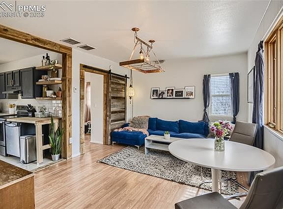 Located in Downtown Colorado Springs, this charming two-bedroom, one-bathroom home is just over 600 square feet. The home also features alley access with a one-car oversized detached garage. The recently updated kitchen showcases beautiful subway tile backsplash, stainless steel appliances, and tile flooring. Wood Laminate floors span across the living room and bedrooms. Also, this adorable home has an accessory dwelling unit. The one bed/one bath cottage, which can be accessed separately, is 460 square feet. Cozy and chic, this residence has a kitchen with concrete countertops, a countertop oven, a dishwasher, and a refrigerator. From the gray LVP flooring to the shiplap wall and stylish light fixtures, this home offers a modern atmosphere that celebrates tiny-house living. Closing to the heart of downtown, shopping, eateries, and entertainment. Zoned R-2. Take a peek today at his one-of-a-kind charmer!