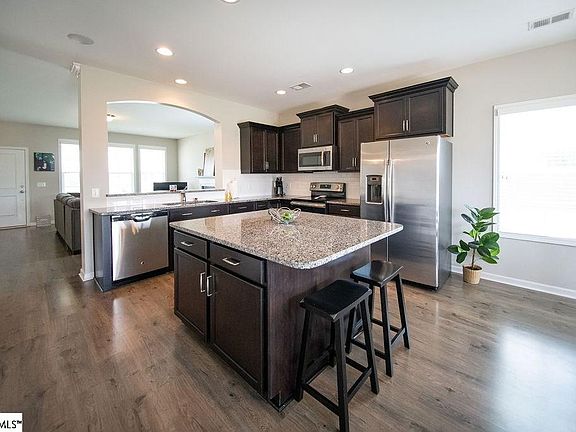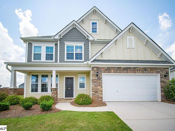 Welcome to Hunt Meadows! You will find this home situated on over half an acre in this quiet neighborhood. Located minutes from I-85, Highway 123 and Highway 153- you have easy access to get to anything you might need! This traditional craftsman features low maintenance hardboard siding and stone accents on the exterior as well as architectural shingles. The front porch is inviting and welcomes you to the open floorplan inside! There is laminate flooring throughout all of the main living areas including the half bath and hallways. A built-in Bluetooth speaker system is installed downstairs, connect your device and enjoy! You'll find an oversized island with barstool seating, a separate counter for barstools, granite counters, upgraded cabinetry and a subway tile backsplash in the large open kitchen. Stainless steel refrigerator to stay with the home! The walk-in laundry, half bath, media hub and master-suite are also located on the main floor. The master suite includes dual sinks, a separate shower with glass door and a soaking bathtub. Upstairs you will find 3 additional bedrooms each with its own walk in closet! The upstairs bathroom also features dual sinks and a deep tub/shower combination. Make your way outside to find the level backyard fully fenced as well as a sizeable concrete patio. There is a sprinkler system installed making the yard maintenance a breeze. Within 10 minutes you will have access to the YMCA, Doodle Walking Trail, Downtown Easley, Rock Springs Impact Center and Popefield Park. Within 15 minutes you will have access to Prisma Health Baptist Easley and Greenville campuses. 25 Minutes to Downtown Greenville.
