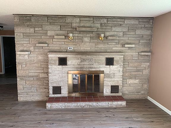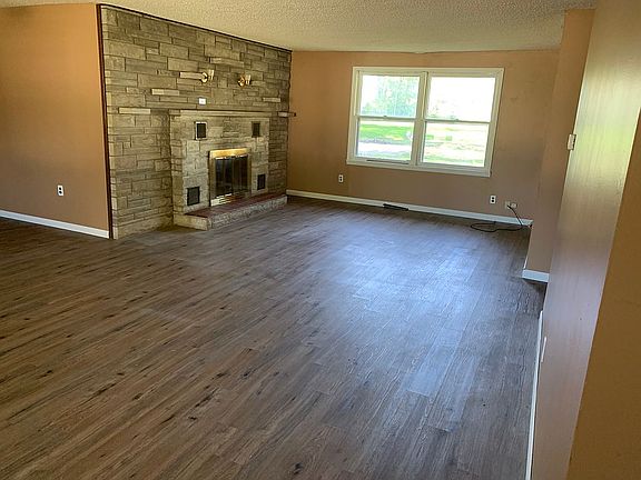 This beautiful ranch style home features a Bedford stone exterior and a paved driveway and a big front yard. The property also has a wide open backyard with a patio bursting with potential. Inside, there’s an excess of space, with four bedrooms and two bathrooms, and an open kitchen and living area. Greeted with natural light coming in from either side of the house, the living room includes a large stone fireplace and plenty of space for entertaining guests. However, if a fire isn’t what you’re looking for, the home also includes a new HVAC unit. The open concept kitchen has plenty of room to host holidays including a new dishwasher and a sink overlooking the front yard. Moving to the master bedroom, there’s a personal fireplace along with copious amounts of closet space. The back room includes a space for laundry with tile floors throughout, and also functions as a bathroom with a brand new water heater. The house includes three more sizable bedrooms with vinyl flooring and windows that allow for natural light to shine in. The second bathroom contains steel wainscotting with a closet for storage. Just outside are built in cabinets perfect for storing towels and any extra toiletries one may need.