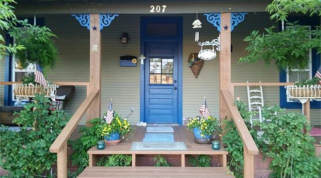 Adorable mid century Bungalow built in the 1920's just blocks from the square in downtown Lockhart. Great walking access to local restaurants, and shops. Beautiful refurbished pine floors, 12 foothigh original T&G ceilings,clawfoot tub.Updated in 2001:plumbing,electric,metal roof,48 inch poplar kitchen cabinets w/glass fronts,CACH,insulation. Lovely landscaping,large covered front porch and pergola at back deck.Built-in armoire. This is a MUST see property with easy access to 183 & 130 Toll.