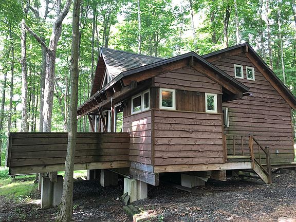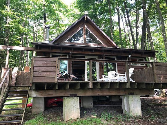PROMISED LAND STATE PARK REBUILT LAKEFRONT CABIN. Enjoy the tranquil location of this ''one of a kind'' cabin rebuilt in 2013 from top to bottom. Tastefully finished modern design throughout the interior of home. Front of cabin overlooking lake features all new windows and glass sliders to deck. Free standing wood fireplace, large shed for workshop and storage. Bring your bikes, kayaks and canoes! Fabulous fishing, swimming and year round activities. No water, modern outhouse with holding tank. Cash only, buyer must be a PA RESIDENT.