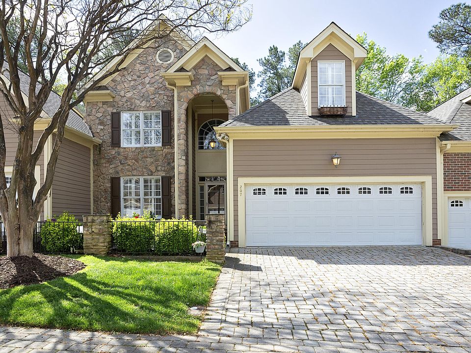 Beautiful 4 bedroom townhouse in the heart of Midtown Raleigh. Updates through out , New roof 2023, new carpet 2020,New primary shower 2020, new gas range and microwave 2022, custom wallpaper in all bathrooms 2022 Beautiful hardwood floors, 9' ceilings & crown molding. Plantation shutters throughout, Spacious living with a see through gas log fireplace to the dining/living room. Kitchen offers plenty of granite counters, 1st Floor master suite with cathedral ceiling, . Media/music room , bonus room,. Built in bookcases in living room, Front patio, 2 car garage with apoxy floor could be used as gym. Brick stonework on the private outdoor courtyard . Location is convenient to Whole Foods, North Hills/ Midtown & 540 to RTP short commute Move in and just start living.