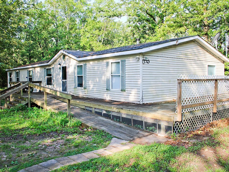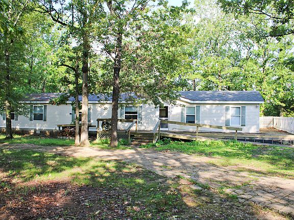 Great location close to Bull Shoals Lake on approximately 6.6 wooded acres. You can have beautiful views just by clearing trees. 4 Bedroom, 3 Bath Manufactured Home with decks, 2-car detached shop/garage and a well. Pretty yard with Lots of shade. Less than 8 miles to Lead Hill Marina. Peace and quiet in the Ozarks!!