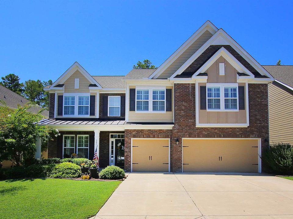 This beautiful SIX bedroom, FOUR full baths, and a THIRD-car garage home is located in the gated, golf course community of Cobblestone Park. Upon entry you will be greeted by beautiful crown molding, hardwood floors, and custom plantation shutters in every room. The formal living room features French Doors which can also be used as a home office. The formal dining room which sits right off of the gourmet kitchen which features custom linen cabinets, a gas cooktop, double wall ovens, stainless steel appliances, and beautiful granite counter tops as well as a tiled backsplash. Adorned with a stoned, gas fireplace and custom built-in bookshelves the family room is a great place to relax and get cozy. On the main floor you will also find a guest suite which has a full bathroom fitted with a custom walk-in bathtub. The stained wood tread stairs leads to the upstairs where you will find FIVE additional bedrooms and the laundry room. The oversized secondary bedroom features the Jack and Jill bathroom plan shared with another secondary bedroom. The master suite is everything you could ask for! This suite gives you enough space to have large furniture pieces, and it also has huge sitting area that features a gas fireplace. Enjoy some quiet time in the garden tub while in the master bathroom which also features a walk-in shower, separate water closet, double vanities, and a walk-in closet. Enjoy a private backyard while sitting on the covered porch or on the outdoor patio area.