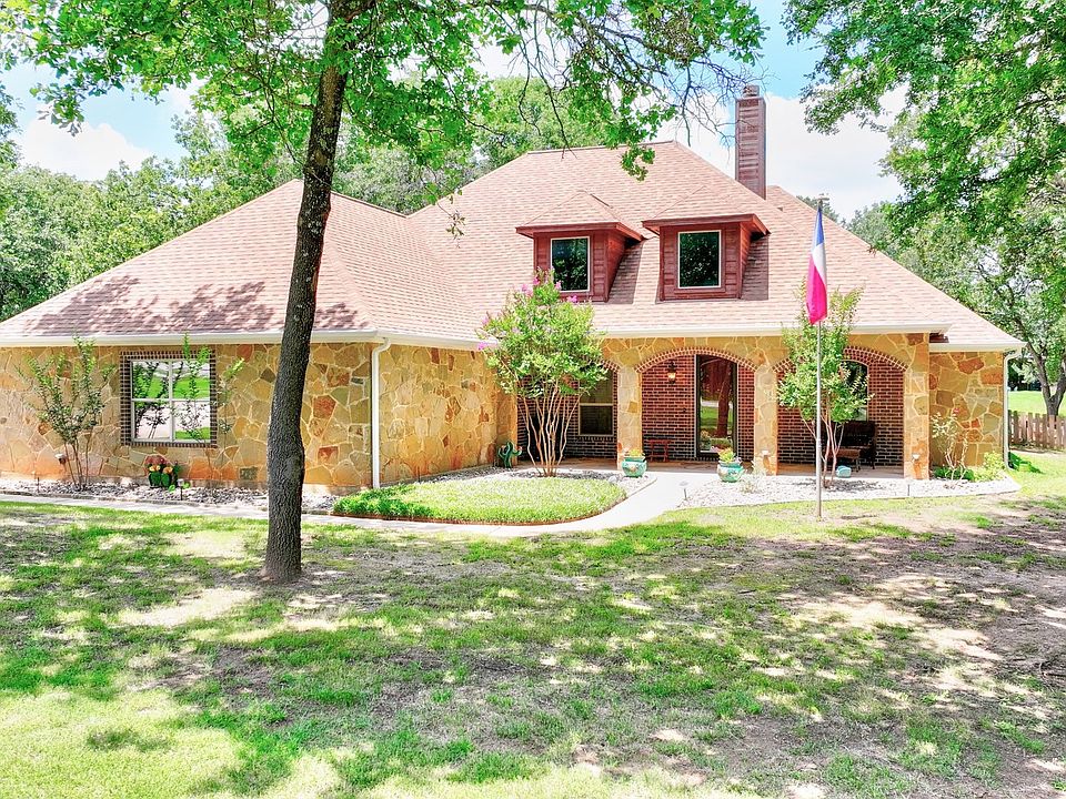 Nestled on a sprawling one-acre lot in tranquil Parker County, Texas, this charming home offers a serene escape from the hustle and bustle of city life. Surrounded by a lush canopy of trees, the property promises unparalleled privacy and a deep connection with nature. Step onto the expansive front porch or retreat to the serene back patio to bask in the sights and sounds of the outdoors. Inside, the spacious open floor plan welcomes you with warmth and versatility. With 3 large bedrooms and a dedicated office space, there's ample room for work and relaxation alike. The heart of the home lies in the island kitchen, boasting custom cabinets, double oven, and a walk-in pantry, making meal preparation a joy while enjoying the outdoor views. With no HOA to restrict your freedom, this idyllic retreat offers the perfect blend of peaceful seclusion and modern convenience—a rare find in the heart of Texas.