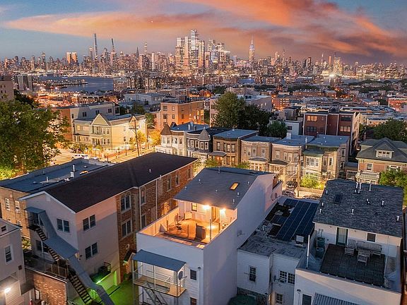 Rooftop Bliss..One of a Kind, Double Terraced Duplex Penthouse with Exciting Iconic NYC Skyline Views Over the River are yours in this supersized 2500+- sq. ft condo Dazzler. Replete with 3/ 4 Bedrooms 3 full baths, 2 Deeded garage parking, Private Balcony & 2 Coveted Private Rooftop Terraces with Low Monthlies! The Fabulous floor-plan features popular open concept Luxury Living with smart home features, recessed Lutron lighting, lavish wide plank Brazilian wood flooring thru out. Showcasing amazing eye pleasing Hudson yards & Midtown views at every turn. Level 1 features sun-filled generous size comfortable living, dining & ideal home office. The Kitchen is a Modern Marvel with so much prep & counter space for the Chef to cook in/ eat in, entertain. Equipped with Quartz counters, newer SS appliances; wine fridge; subway tiled backsplash and pretty newly tiled flooring. Beyond 2 Bedrooms include the enormous Primary Bedroom suite with walk-in- closet, en suite spa inspired windowed Bathroom, double vanity, frameless glass enclosed shower & stylish geometric tiled flooring. Ascend to Level 2, Discover a fabulous Loft style Jr. 1 bedroom suite featuring Soaring 14ft ceilings, luxury marbled spa bath with Jacuzzi+shower & sprawling living space, playspace, Den TV Room. There is brilliant light thru out captured from both Eastern & Western exposures via skylights & both Rooftop Terraces. Having private outdoor living space is a rare true Luxury! Whether your entertaining, dining al fresco, planting a garden or Summer staycation; 2 Large rooftop terraces with Views of the Iconic NYC Skyline is sure to please! Level 2 offers so much flexibility; Ideal for extended family living, or as your taste dictates, Hang out room, office, artist studio. Notable features Central HVAC; Smart Nest Thermostat & Alarm abundant closet space. Both Terraces feature snow melting cables. Discover the beauty of this Move in Ready home with a Low Monthly HOA of $227.00. A Stellar Location surrounded by every Urban convenience; A commuter delight only 3 miles to NYC PA via Light rail, NJ transit bus are steps away. Adjacent to vibrant Washington Park, bike paths, sports fields tennis courts, pickle ball, dog run et al. Benefit top ranked Public schools; Sara M. Gilmore Academy, Jose Marti Stern Academy. Invest or own occupy. Don't Miss Out!