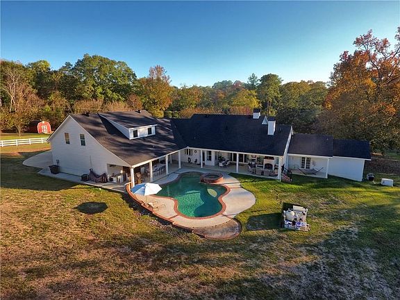 Welcome to this exquisite property nestled on a sprawling 17+ acre oasis in the heart of Pineville. The property has undergone a complete remodel and a 1000 SF addition in 2019, showcasing scrupulous taste, attention to detail, and custom qualities that will captivate you from the moment you step inside. Every aspect of the home has been meticulously updated, including floors, ceilings, electrical, plumbing, on demand hot water heaters, and three AC units. As you enter the living area, your eyes are immediately drawn to the grandeur feeling of soaring ceilings adorned w/exposed beams & the brand-new wood burning brick fireplace, The kitchen is a chef's dream, featuring beautiful quartz countertops, new cabinetry, & a custom kitchen island made from reclaimed wood. A butler pantry & walk-in food pantry provide ample storage space. The home offers breathtaking views from every room, and the highlight is the 115-foot back porch, complete w/an outdoor living area complimented w/a fireplace & kitchen, as well as an illuminated stone island. There are 4 bdrm suites w/complete baths downstairs. The primary suite is a true oasis, featuring an electric fireplace, custom steam shower, soaking tub, & stunning tile floors. The bdrm also boasts an abundance of closet space. Gorgeous wood & brick flooring can be found throughout the home, adding to its timeless elegance. A side entrance door leads to a hallway with mudroom lockers and a command center conveniently located just off the new two-car garage. For pet owners, there is a wrought iron fenced dog yard, ensuring the safety and comfort of pets. The home is surrounded by luscious landscaping and offers a gunite pool and spa, great for relaxing and entertaining. There is an RV/boat storage, as well as a barn & shed. The addl 10 acres has a large pond full of fish. This exceptional home in Pineville offers a blend of modern luxury and timeless charm, making it the perfect place to call home. Come view this rare find.