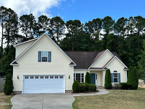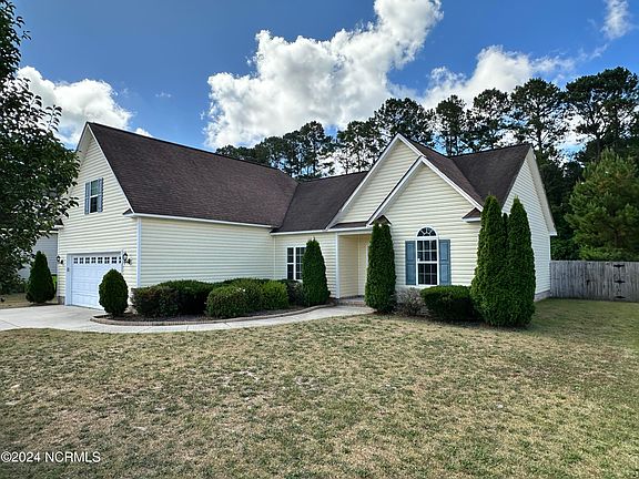 Schedule a showing today for this beautiful home; tucked away in the serene Pecan Ridge subdivision. Once inside, notice the formal dining room adjacent to the spacious living area with nine-foot ceilings. Enjoy the large primary bedroom featuring double closets with ensuite bathroom including double vanities and garden tub. Two additional bedrooms located on the first level, with FROG (finish room over garage). Septic improvement permit states 4 bedrooms. Attached two car garage and spacious, fenced-in backyard. Convenient to the MCAS Cherry Point and the Crystal Coast Beaches. Roughly six miles from Downtown New Bern.