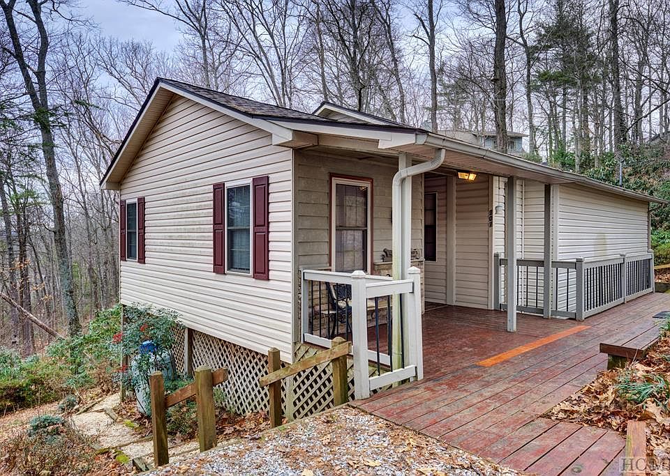 Great starter home, Mountain Get-a-way or a perfect year round home. This 2 bedroom/ 2 bath home is just minutes from the center of Cashiers. Features include, both bedrooms on the main level, beautiful wood floors, wood burning stove in the living room, bonus room on the lower level as well as a basement work area. Laundry on main, covered deck on back side of the home , porch off the lower level, very cute yard, and best of all a gorgeous 'winter' mountain view!