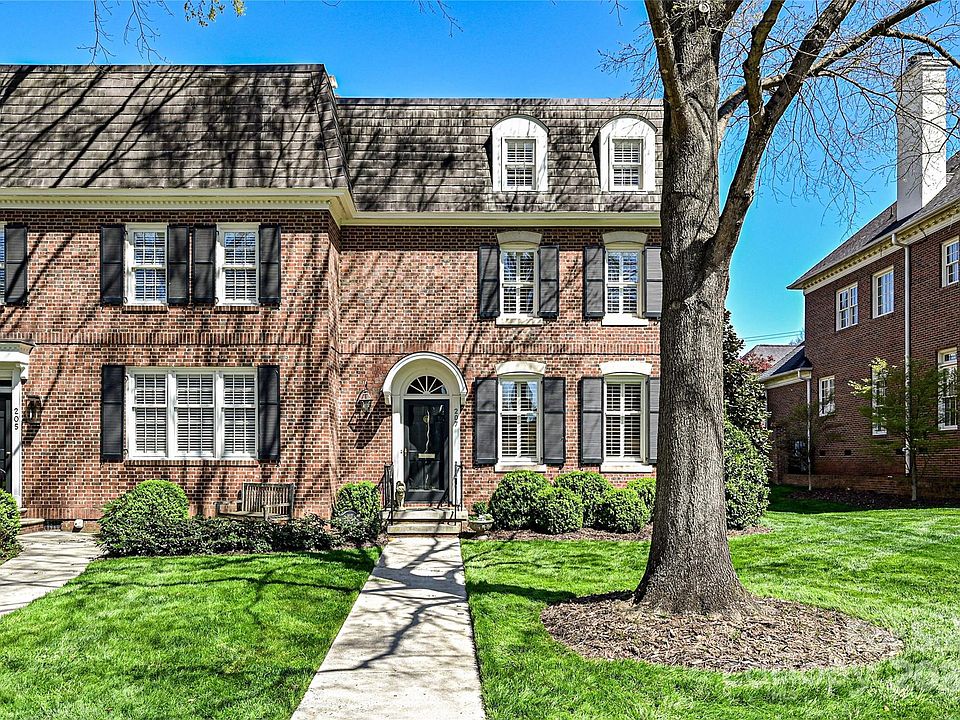 Stately brick townhome on desirable Perrin Place in the heart of Eastover. Elegantly renovated end unit was thoughtfully opened creating perfect layout. Stunning new kitchen-lovely quartzite countertops, custom cabinets, high-end appliances. Gleaming hardwoods. Tons of natural light-custom interior shutters. Beautiful living room-built-ins/fireplace. Extensive new millwork, arched doorways, designer paint. Lovely den-second fireplace- gas logs, built-ins, new bar area. Den opens to raised porch overlooking fenced sophisticated garden with brick/pebble pathways. Perfect location- lush landscaped common area separating it from next home. Large Primary suite with walk-in closet- partially updated bathroom. Beautiful guest suite-nice closets and full bath. True stairs to lower ceiling third floor with finished extra bedroom/bonus/office space that is not able to be counted in total. Huge walk-in attic. New furnace/ductwork, new plumbing, sealed crawlspace/dehumidifier. 2 carport spaces.
