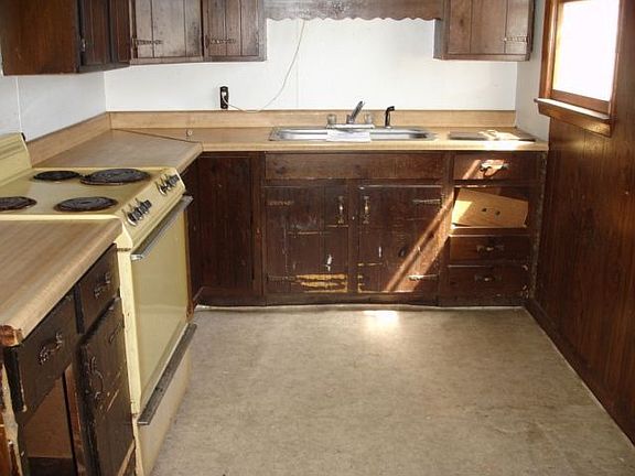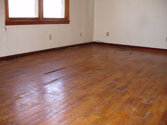 Exterior Features: 2 car garage, possible 1 acre of land, bad roof, bad soffits and eaves and gutters, erosion in front yard, handicap ramp, siding Interior Features: rotted hard wood floors, drywall damage, 3 bedroom, 1 bath, dining room, kitchen, basement, furnace, water heater, living room, no carpet, plumbing and electrical in tact, needs paint, laundry room