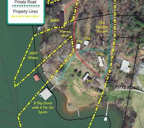 PRICE IMPROVEMENT FOR THIS RARE G UNRESTRICTED CHATUGE LAKEFRONT PROPERTY. 11.695 Acres w/520 +/- ft of Lake Frontage above the 1933' contour & most all is on Deep Water. Includes a Pier, covered 8-Slip w/4 Tie-ons Dock, Fiber Optics Internet, gentle/level land, Mature Woods, Road access to various sections of the property, a Mountain Spring, Shared Well, 4 Living spaces (1 Main house, 2 cottages, 1 MFG Home & chicken house) the infrastructure is in place for multiple possible uses, Resort, Marina, campground, Retirement / tiny house village, private lake front estate, the property is GUnrestrictedG. Qualified Buyers Only, appointment needed. Drive byes from the lake are welcome anytime. Current Survey. Offered As Is, Where Is. Investors Welcome. Will not subdivide. Entertaining all written offers.
