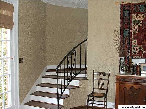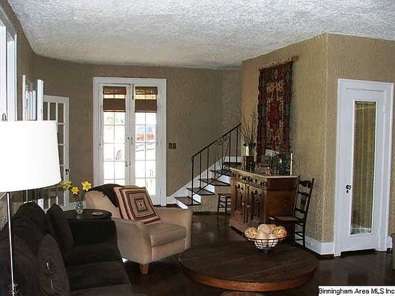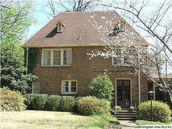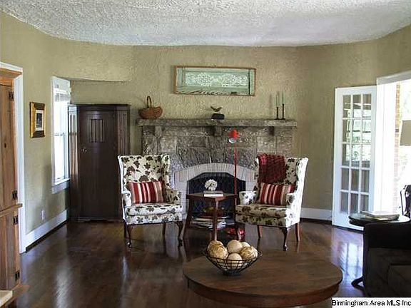 So much character and charm on coveted Poinciana Drive in Hollywood. English tudor has sunroom running length of house parallel to the living room with rounded corners and a grand stone fireplace. Original stucco/plaster walls, hardwood floors, and solid wood doors throughout. New carpet on stairs and hallway upstairs. Foyer has unique curved stairwell. Four spacious bedrooms upstairs, one with a smaller version of the stone fireplace, a hall bath and a Jack & Jill bathroom. Kitchen has been redone with granite countertops, 42 inch Cherry cabinets, electric cook top. Breakfast area has bay window seating; separate formal dining room and a half bath downstairs. Detached original garage. Outdoor patio with arbor leading to backyard with privacy fence. Functioning well used to wash cars and water yard. Large lot on great street. Close to major highways and downtown Birmingham.