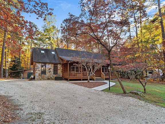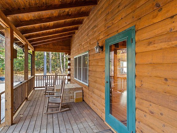 Charming, well maintained 4 bedroom log cabin in an idyllic setting just a mile and a half to downtown Carthage. This home is nestled on a beautiful lot with mature hardwoods and pine trees and has plenty of privacy. Two bedrooms on the main floor and a spacious sunroom to take in your natural surroundings. Kitchen with built-in banquette for dining. Vaulted living room with catwalk. Large back deck with plenty of space to dine or sip your morning cup of coffee. 18x24 workshop behind the home with two covered spaces to be used as a carport or for storage. Additional half-acre lot behind the property is included.