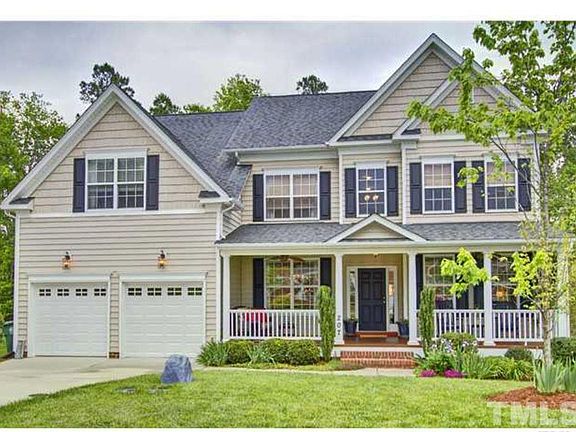 Beautiful home w/lg rocking chair porch, lovely landscaping & fenced yd! Both formals PLUS study. Large open Family with FP. Amazing kitchen with w/granite, huge island w/bead board, gas range & lg walk-in pantry w/ custom Elfa system. Master suite w/amazing custom closet. Spacious BR's & great Bonus rm. Trex deck. Surround sound. Irrigation system. Tesla charging. Access to Am. Tobacco Trail. New HVAC & water heater! Community pool & clubhouse! Easy access to RTP & RDU via 540 or internal roads.