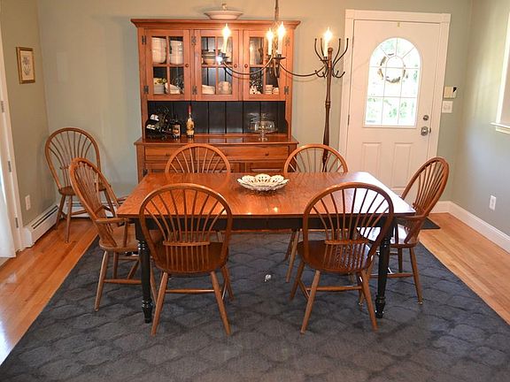 Pristine Cape situated on 2 cleared, meticulously landscaped acres with farmer's porch. The spacious first floor includes oversized kitchen with plentiful custom cabinets, center island, granite counter tops and breakfast nook. First floor consists of living room with fireplace, formal dining room, family room, full bathroom and laundry room. Beautiful for entertaining, enjoy the stunning 16 x 20 foot (320 sq. ft.), three season room with 2 sets of French doors leading to gorgeous wrap around deck and stone paved patio with built in fire pit. The second story features a huge master bedroom with two walk in closets with two additional bedrooms featuring built in shelves. Full bath with double sinks and granite countertops. Hardwoods, central air and vacuum throughout. Wood burning stove in easy to finish full basement. Well water. Generator ready. New 200' paved driveway.