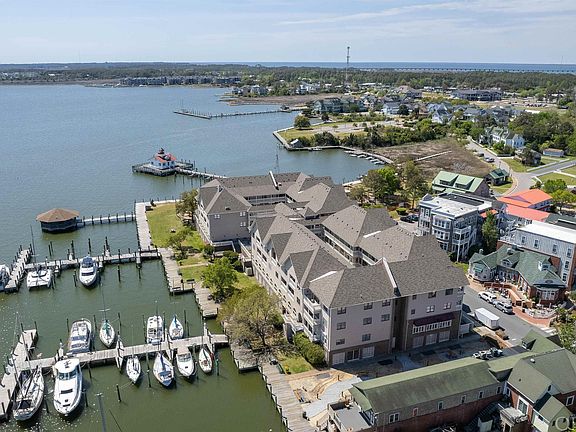 Welcome to this charming condo located in the heart of the Outer Banks. Situated in the only true town center, of Manteo, this property offers an exceptional living experience with its convenient location and numerous amenities. Take a leisurely stroll along the boardwalks, exploring the array of shops, restaurants, and galleries that line the streets. Enjoy the lively ambiance and the opportunity to engage with the local community. The condo itself boasts a prime position facing Queen Elizabeth Ave, offering a picturesque view of the town. The large deck provides an ideal spot to unwind and soak in the breathtaking sunsets that grace the horizon. Whether you prefer solitude or entertaining guests, this space is perfect for both relaxation and socializing. Inside, the condo features two spacious bedrooms and two full bathrooms, ensuring ample space. The well-designed layout seamlessly connects the kitchen, dining area, and living room, creating an inviting and open atmosphere for everyday one level living. The Waterfront Condos, the building in which this condo is located, offers an array of amenities designed to enhance your lifestyle. Residents have access to a private parking garage with one reserved assigned space conveniently situated under the building, ensuring secure and hassle-free parking. Additionally, there is a storage room assigned for the condo to provide additional space for belongings or seasonal items. For easy access, an elevator connects the parking garage to the various levels of the building. Don't miss out on the opportunity to experience the true essence of living in the Outer Banks. With its central location, stunning views, spacious interior, and convenient amenities, this condo is a must-see for those seeking a desirable and fulfilling lifestyle.