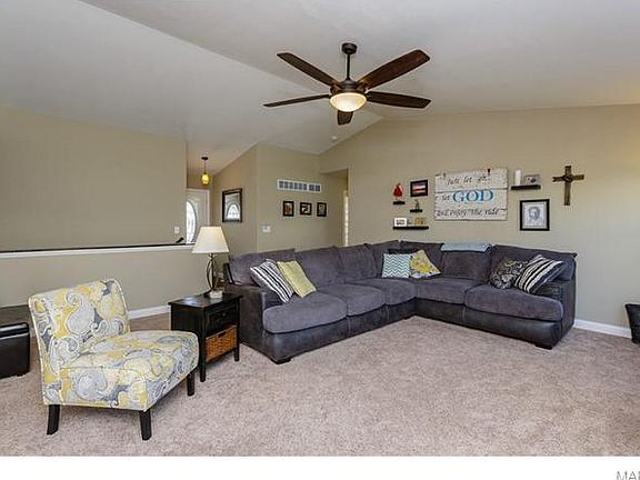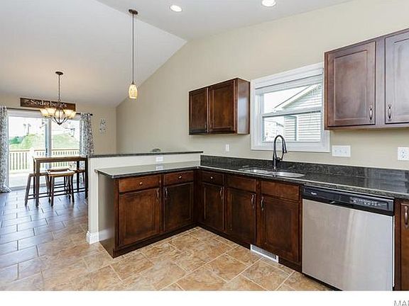 Fantastic, like-new ranch ready for immediate move in! This 3 bedroom, 2 bath, one owner ranch has a popular, open floor plan and has the features that today’s buyers are looking for. The exterior is stunning with brick, maintenance free siding, shake siding detail, architectural shingles, enclosed soffits and fascia, carriage style garage door and a brick mailbox. Interior features include vaulted ceilings, open stairs to the lower level, ceiling fans, granite countertops, upgraded faucets, stainless steel appliances, smooth top stove, micro, dishwasher, refrigerator, washer, dryer, pantry, ceramic tile flooring in the Kitchen-Breakfast Room-Laundry Room-Bathrooms, raised height bath vanities, double bowl in the Master, walk in closet in the Master Bedroom, an oversized garage (21 X 21) and more. The lower level has a bath rough in and an egress window for an easy future finish. There is a new (2015), 12 X 20 deck with steps to a large and level back yard. There is easy access to Highways 40, 70 and the many shops, restaurants and services on Wentzville Parkway. Lots to love…check it out!
