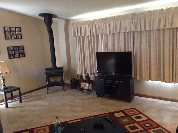 Three bedroom, two bath family home for sale by owner. The house has an open concept kitchen/dining/living room. Wood burning stove, natural gas forced air furnace and water heater. Walk in tile shower in bathroom attached to master bedroom. Custom built kitchen with matching appliances, large pantry and island with breakfast bar. Bedrooms are carpeted and the balance of the house is laminate tile. The yard is fully fenced, on a double city lot and a dog run separately fenced at the side of the house. On a quiet cul-de-sac road.