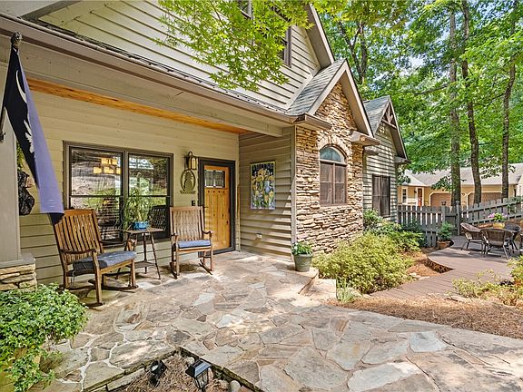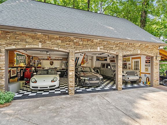 Offer submission deadline is 7pm on Sunday, June 11. Whether you've been looking for months or it's your first day on the house hunt, you better jump on this one before it's too late! When searching for a Lake Hartwell waterfront home, it's not often that you come across a beautifully maintained home that falls into the "just right" size range, has both a home theater and a 3 car garage, and happens to have deep water at all times! The covered dock is equipped with a boat lift, 2 PWC lifts, and two swim ladders. There is a wooden path that leads all the way from the front of the house to the shoreline, as well as a concrete path that goes around the opposite side of the home to the Corps line. The detached garage has an extra overhang that is a perfect spot to store your golf cart, and there's an unfinished area above the garage that's currently being used as a workshop and storage area. Inside, the living area features a cathedral ceiling, heart pine floors, a wood burning stove, as well as access to the screened porch and deck. The kitchen has been updated with custom shaker cabinets, under cabinet lighting leathered granite countertops, farmhouse sink, and stainless steel appliances. The cabinets include a pull-out trash can, pantry style, pull-outs, and more. Located on the main level, the primary bedroom has access to the lake side deck, as well as a walk-in closet, and a private bathroom with double sinks, jetted tub, and separate shower. Completing the main level is the laundry room, two additional bedrooms, and a second full bathroom. Downstairs is a large living space with a kitchenette on one end, a second full kitchen, a study/office, and a theater room with tiered seating platforms (seating and projector will remain). The home's fourth bedroom and third full bathroom are located on this level, as well as another room which could be used as sleeping quarters and has a closet but no window.