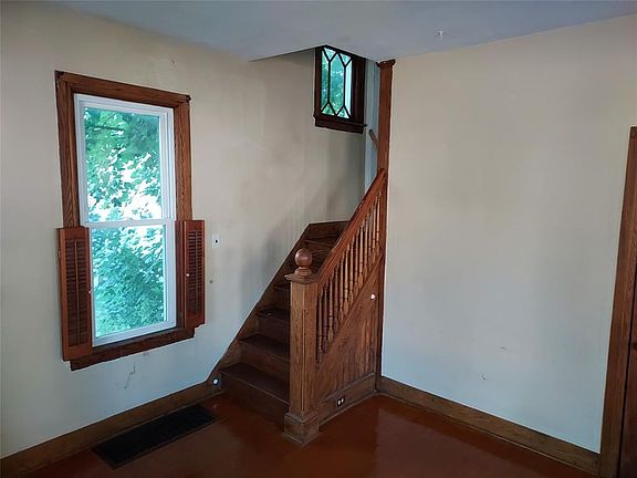 Nice two story home with covered front porch and open back deck on corner property. Front foyer room, large window in living room, 4 good sized bedrooms upstairs and large walk-up attic great for storage. Big backyard, detached large 1 car garage, full size basement.