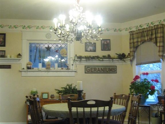 SIT ON THE COUNTRY PORCH & SIP LEMONADE. 1912 Manhattan Charmer on over a 1/4 Acre has been truly loved & cared for and it shows. Built-in pillars between living room and dining room, leaded glass windows, newer wiring, windows, flooring and many more updates throughout. The yard is immaculate with gardens, fenced dog area, patio and a small lighted pond. 2 car detached garage with additional storage in hayloft area. You will fall in love with this home and all its treasures.