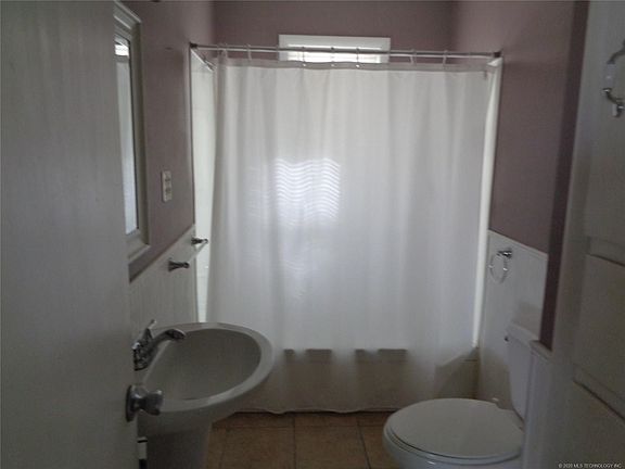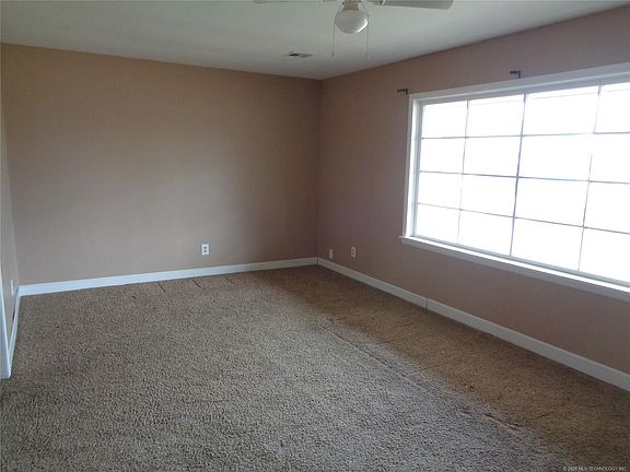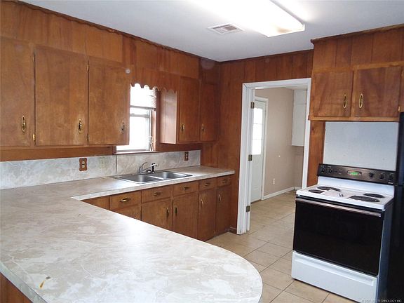 1 Car Attached Garage has been converted into a Bedroom or Den Located on North Side of House, Two Bedroom & Hall Bath on South side of House, Lg Living Room w/ Picture Window, Country Kitchen w/ lots of Wood Cabinets & L -shaped Counter Top, Dining Area W/ Glassed Double Doors leading to covered Patio, Fenced Back yard with some lg trees, Metal Roof new in 2019. Small Covered porch at front door