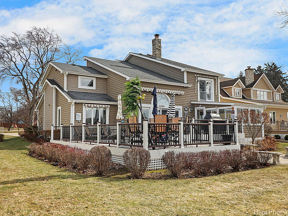 PHENOMENAL CONTEMPORARY CHAIN O'LAKES FOX RIVER RIVERFRONT 3 BEDROOM 3-1/2 BATH 3500+ SQ FT HOME WITH SUNSET WATER AND NATURE VIEWS WILL IMPRESS YOU FROM THE MOMENT YOU STEP INSIDE. THE TWO-STORY FOYER OPENS TO AN AMAZING GREAT ROOM WITH SOARING NATURAL STONE WOOD/GAS FIREPLACE, VAULTED CEILING AND FABULOUS RIVER VIEWS! THE BEAUTIFUL SPACIOUS DINING ROOM OFFERS GLASS DOOR TO HEATED SUN ROOM BOTH WITH AMAZING RIVER VIEWS. THE LARGE CASUAL EATING AREA IS OPEN TO THE HUGE KITCHEN AND PERFECT FOR GATHERING. PLENTY OF KITCHEN CABINETS AND COUNTER SPACE PLUS A PANTRY CLOSET. THE LAUNDRY ROOM HAS BEEN REMODELED AND OFFERS ADDITIONAL CABINETS, COUNTERS, SECONDARY ENTRY, ACCESS TO THE GARAGE AND HALF BATH. ON THE OTHER SIDE OF THE GREAT ROOM IS AN OFFICE THAT WAS PREVIOUSLY A 4TH BEDROOM... THIS SPACE COULD EASILY BE CONVERTED BACK IF DESIRED. THE OFFICE IS BEAUTIFUL AND HAS FANTASTIC RIVER VIEW! SPACIOUS 3RD BEDROOM WITH PRIVATE FULL BATH IS ON THE MAIN LEVEL. THE FOYER HAS A LARGE GUEST CLOSET AND THE OPEN STAIRCASE LEADS TO THE UPPER LEVEL BRIDGE. THE MASSIVE MASTER SUITE IS A PERSONAL SANCTUARY AND BOASTS GLASS DOOR WITH JULIET BALCONY OVERLOOKING THE RIVER AND CONSERVATION LAND. MASTER BATHROOM IS QUITE LARGE WITH DOUBLE SINK VANITY, DRESSING TABLE, SHOWER, SOAKING TUB AND WATER CLOSET. OFF THE BATH IS THE ENORMOUS DRESSING ROOM/WALK-IN CLOSET WITH CUSTOM ORGANIZERS. BEYOND THE DRESSING ROOM ARE TWO BONUS SPACES THAT OFFER A VARIETY OF USES FROM A QUIET OFFICE, SEWING ROOM OR NURSERY TO LARGE STORAGE SPACE. MANY NEWER ELEGANT LIGHT FIXTURES. BEAUTIFUL NEWER CUSTOM MILLWORK AND MOLDINGS INCLUDE CROWN, WALL AND BASE MOLDINGS AS WELL AS COFFERED CEILING IN THE OFFICE. NEWER TWO-PANEL INTERIOR DOORS WITH PREMIUM HARDWARE. GORGEOUS NEWER HARDWOOD AND 24"X24" TILE FLOORS THROUGHOUT THE MAIN LEVEL WITH CARPET AND TILE UPSTAIRS. EXPANSIVE TWO-LEVEL COMPOSITE DECK WITH OUTDOOR SPEAKERS IS PERFECT FOR ENTERTAINING OR PEACEFUL WATERFRONT SUNSETS. THREE AWNINGS ON THE WEST SIDE OF THE HOUSE. DOWN FROM THE DECK IS A 20X15 BRICK PAVER PATIO WITH BENCHES. YARD IS NICELY LANDSCAPED. ENJOY THE 42X10 CONCRETE RIVERSIDE PATIO WITH SHORE POWER, TWO DOCK BOXES AND TWO 10X40 PERMANENT PIERS WITH COVERED 10K BOAT LIFT. STEEL SEAWALL ALONG THE 68 FEET OF RIVER FRONTAGE ON THE WIDEST AND CALMEST PART OF THE UPPER FOX RIVER. ATTACHED HEATED GARAGE HAS A LARGE STAINLESS STEEL REFRIGERATOR. MAIN ENTRY FEATURES ANOTHER PAVER PATIO. THERE IS PARKING FOR GUESTS AND SPACE FOR A BOAT TRAILER. THERE'S A BIG GARDEN SHED BEHIND GARAGE AND THE LOT ACROSS THE STREET IS WHERE THE SEPTIC SYSTEM IS LOCATED AND INCLUDED WITH THE PURCHASE. THIS PRISTINE AND METICULOUSLY CARED FOR HOME COULD BE ALL YOURS.