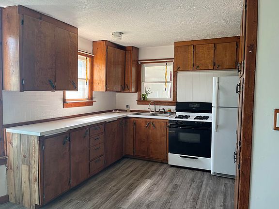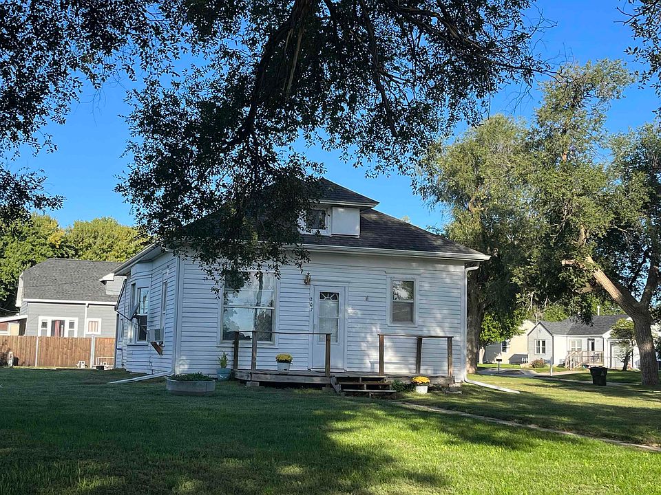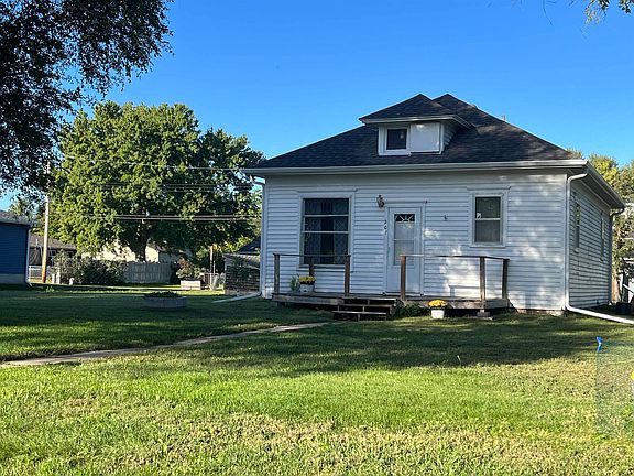 Looking for an investment property or first time home? This home features 2 bedrooms, 1 bath, full unfinished basement, oversized 2 car detached garage with mechanic's pit, and a shed. It sits on large corner lot that is 132x140 with mature trees, fruit trees, alley access and is within walking distance to the medical clinic/hospital. Home features some newer windows. Kitchen appliances stay.