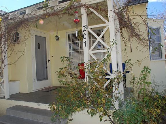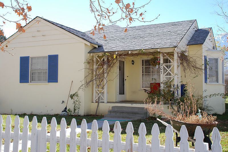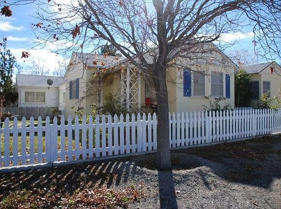 This adorable home with hard wood floors and charming accents has everything you need. 3 bedrooms one bath, roomy kitchen with pantry space. Detached separate laundry room includes washer and dryer. Detached garage/shop and space for boat, RV or other toys. Central propane heat and central A/C. Covered front porch, lawn, trees and roses. Fully fenced and landscaped corner location with views of the Sierra. It is a warm and inviting place.