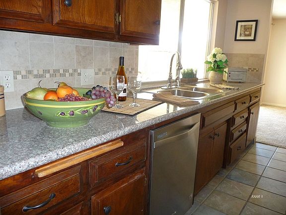 As you drive up you will notice the professionally landscaped front yard & the newly painted exterior. This home is 3 bedroom, 2.5 bathrooms in 1876 sq ft. Check out the new paint, new carpet, new granite in kitchen & baths, new kitchen exhaust fan, new stainless cooktop, new dishwasher & new fridge, pantry, flat ceilings, new kit ceiling & can lights, double ovens new in 2013, new master shower door, a makeup table & two closets, guest bath has 2 sinks, new granite, newer toilet, tub/shower, family room with fireplace, formal living room and dining room. Flooring: new carpet, new baseboards & ceramic tile. Inside laundry with ½ bath. The 2-car garage has new double roll-up door in front & new single roll-up door in back. The garage has new drywall, paint, painted floor, painted ceiling beams & a new hot water heater. The roof was replaced in 2004 with 30 year ELK comp shingles. The AC was replaced in 2008 with a 13 SEER unit. The backyard has been professionally landscaped, has a new west fence, a covered patio with stucco underneath also with stucco eaves. This beautiful home is move-in ready!