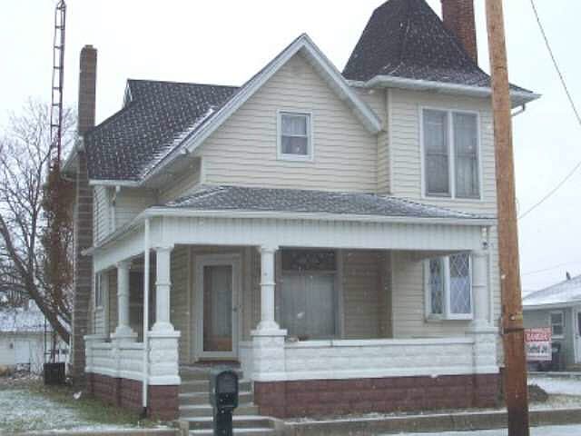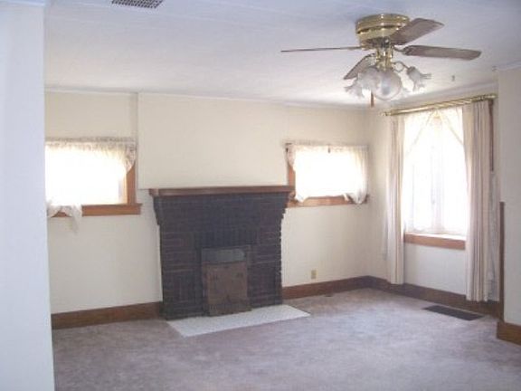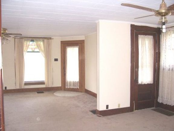 Over 2,000 sq. ft. in this 2 story home on Historic Farmland's Main Street. The home features 4 bedrooms, 2 baths and a roomy kitchen with newer oak cabinets. Some stained glass windows, most rooms have replacement windows. Fireplace in livingroom--no longer operational (might be a good place for vent free gas log). There is a flue in dining room, where past owners had woodburning stove. Basement, wrap around porch, back deck and 2 car detached garage (24 X 30), built in 1987, 2 garage doors w/openers, 100 amp. service, drain in floor and 5'3" mechanics pit. Off street parking.