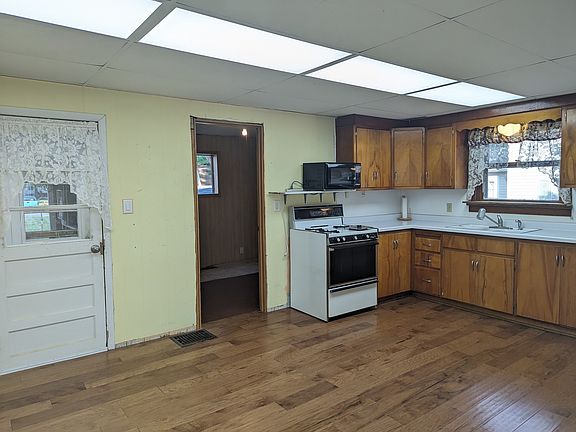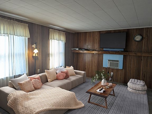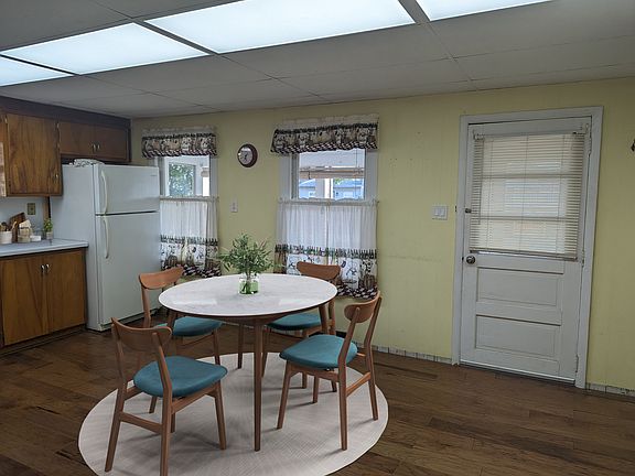 This charming ranch-style house boasts a cozy one-bedroom layout, with an additional bonus room and full bath. Main floor convenience features an enclosed front porch, eat-in kitchen ideal for meals and gatherings, and relaxing living room. The house offers two window air units to keep you comfortable. The detached 1 car garage accessible through the alley makes parking a breeze. Through the garage is basement access, where you find a roomy workshop perfect for hobbies and storage. Additionally, the large yard is perfect for outdoor activities.