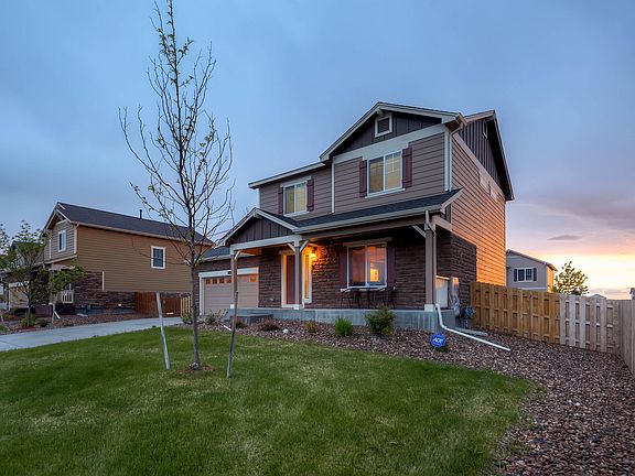 Almost New with The Best Yard in Adonea! Welcome home to this beautiful, completely turnkey home with a spacious, light and bright open floorplan. Step in off the covered front porch to the oversized family room with plenty of space for your large entertainment center. The eat-in kitchen is highly upgraded with Corian solid surface countertops, beautiful hardwood floors, upgraded cabinets, full stainless steel appliance package including fridge, and spacious dining nook. Upstairs you'll find a real master suite with en-suite bath. You'll also find two spacious additional bedrooms and an adjoining full bath. Bring the outdoors in with the best yard in Adonea... Large and flat/very useable with a huge custom paver patio with custom seat wall. Beautiful trees with uplighting add ambiance and privacy. There's a mountain view from your master and yard. This is a smart home too, with keyless entry and much more. Own this home for less than market rent!