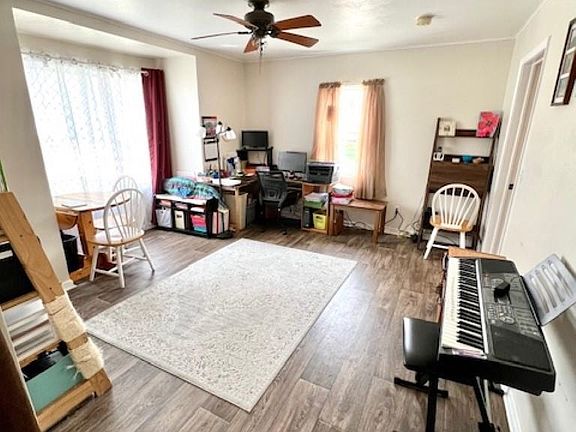 This charming 3+ bedroom home is conveniently located with an oversized two car garage that is insulted and great for working on projects or storing hobby toys. It has an inclosed front porch and a nice mud room off the laundry in the back of the home. It has a bedroom on the first floor that could serve as a primary bedroom with three more rooms up stairs served by and ample bath with shower and tub. Two of the bedrooms upstairs are conjoined, so it would serve as either bedrooms or bedroom with play area. There are two nice rooms on the first floor to serve as a living room dining room or a living room family room. There are also some raised garden beds on the north side of the house. Come look at this cozy home.