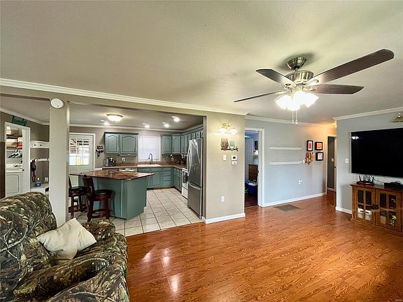 Don’t miss this darling ranch home in Oran, where neighbors still look out for neighbors. Bright, airy living areas are ideal for enjoying friends and family. You’ll especially love the remodeled kitchen, featuring refinished oak cabinets with new hardware and a custom island. Outdoors, the large lot is super for playtime, gardening, and relaxation. Enjoy summer days at the above-ground pool and deck, or cozy up for fall nights around a firepit. The 30x40 shop, with two garage bays (one Wi-Fi-enabled), is heated, cooled, and equipped with cabinets and workbenches. A fantastic loft has the potential for loads of storage or creative space. There’s even another full bath that just needs a little plumbing work to be back up and running. A new HVAC system (5/24) with a transferable warranty, a durable metal roof, and all large kitchen appliances, are bonuses! Sellers would prefer to stay here, but a career relocation for them means opportunity for YOU!