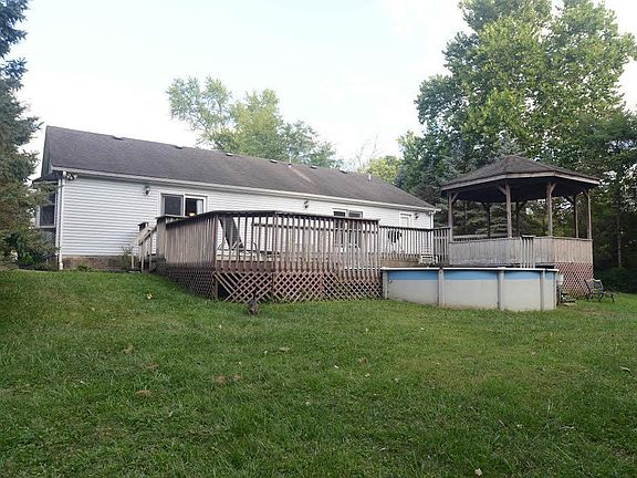 Custom built ranch home with full basement. 3 bedrooms, 2.5 baths, open floor plan, attached 2 car garage, large deck, lawn building, gazebo, stone front, concrete drive and private lot. Over sized master suite with double closets and large bath. Lots of upgrades including poured wall basement, solid wood doors and trim, wood insulated windows, and convenient location.