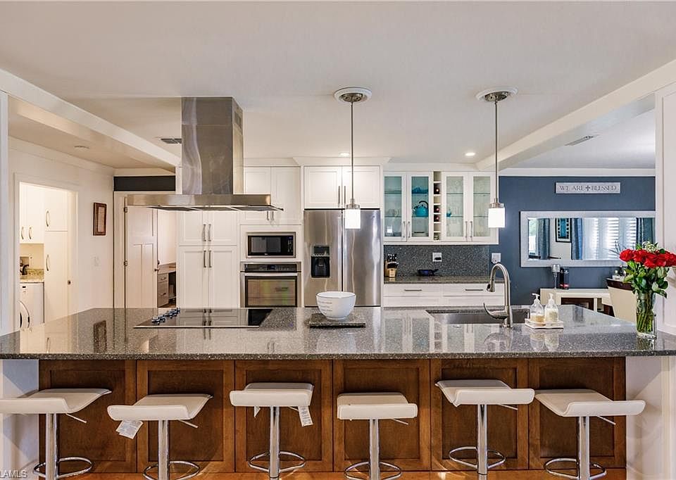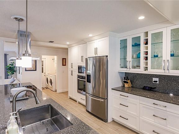 Stunning Modern Renovation! REDUCED TO SELL. This is truly a one-of-a-kind home. Custom Quality Soft Close Cabinets and Closets. Quartz Counters. Top-of-the-line Stainless Steel appliances. Massive breakfast bar. Large Open layout with spacious rooms. Accordion Hurricane Shutters. Electric Fireplace. Lots of storage. New PEX Plumbing. New Tile. New Electric Panel. Large private screened Lanai. Beautiful new white fencing and room for a pool. Fresh Landscaping. Recently painted. Large Driveway and Fantastic location. Owner is selling due to job transfer. An absolute must see! Furnishings available separately. Motivated seller. Bring all offers.