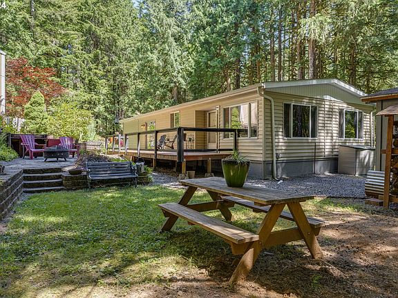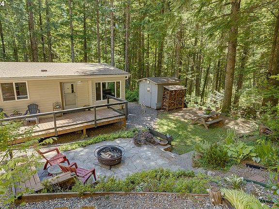 Located in the community of Corbett, this well cared for home sits on a 1.22 acre wooded oasis. Carefully cultivated landscaping is enhanced by majestic trees providing shade and shelter. Protected from the east wind, you can enjoy relaxing on the front deck or by the outdoor fire pit, soaking in the serenity of your surroundings. Inside the home you will find everything you need for comfortable living, complete with a well-equipped kitchen, two bedrooms, two attached bathrooms, and a wood pellet stove. The property also features a 22x24 insulated shop, with 220 volt power, concrete floor and a large sliding door. Other outbuildings include the 8x10 water pressure tank house, and a small 8x8 bunk house with a second fire pit area. You will appreciate having a path down to the year-round creek on the property, and shared access to the private pond nearby. The home is wired for a back-up generator, and the fresh spring water system is located right on the property. The septic system was also recently updated with a brand-new septic tank! Corbett is well known for its highly ranked school district, as well as easy access to I-84, Portland, and the Columbia River Gorge. In this location you will find that opportunities abound for outdoor adventure and experiencing the beauty of nature. Showings available by appointment.