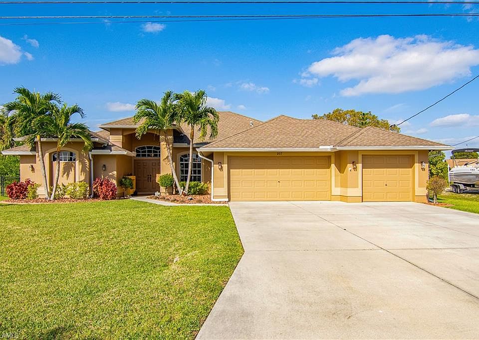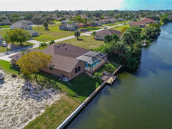 Enjoy this Beautiful waterfront pool home and catch huge Bass off your dock or go boating on one of the best canal systems. This is a four-bedroom, two and a half baths house with a three-car garage that offers plenty of room for all your toys. The kitchen features quartz countertops and stainless steel appliances. House exterior, lanai, pool deck, seawall, and dock were recently painted. City Water and sewer are in, and ALL ASSESSMENTS ARE PAID. Not in a flood zone. Conveniently located to restaurants, shopping, parks, and Fort Myers.
