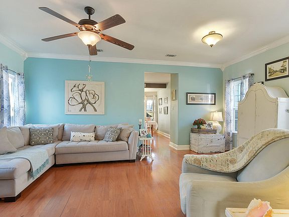 A Rare find located in the heart of Bay St. Louis. Updated L-shaped cottage with large front porch, beautiful front yard, and courtyard in the back for entertaining. Master bedroom and updated ensuite are located off the living room and the two guest bedrooms and bathroom are located on the opposite side of house for privacy. The guest bedrooms have their own separate den. Great for guests or as a VRBO. The updated kitchen has an adjoining dining room with a bay window looking out over the back courtyard. This house has beautiful wood floor and some of the charming feature of the original Victorian cottage with modern coveniences. Located on a quiet street, within walking distance to the beach, entertainment, dining, and shopping. Real Living in the BAY!!