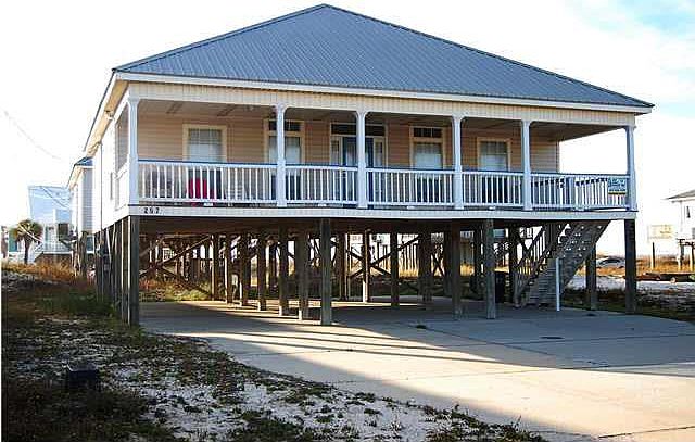 Great water views of Ms. Sound, Mallard Canal and Gulf of Mexico from this 3 bdrm, 2 ba home. Vinyl siding, Metal roof, Lg Covered front porch, dry entryway, concrete drive with parking under home. Tile floors in lv area, dining, kitchen and baths. Crown molding, tray ceilings, lg windows to maximize views. Ceiling fans throughout. Selling furnished. On rental program with good history.