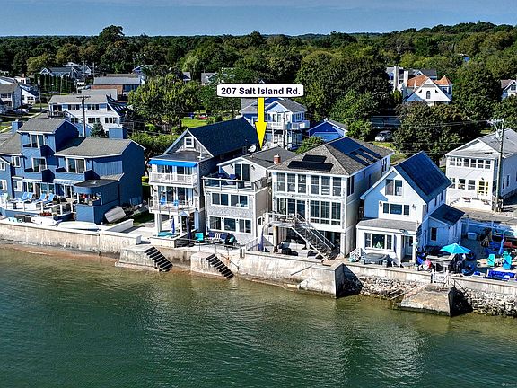 Is ocean life calling you? Don't miss your chance to own a piece of Westbrook's OCEAN front! Hear the waves splash?! This YEAR ROUND shoreline gem with fixed mooring is a rare offering. Enjoy panoramic views of Long Island Sound and Salt Island. This home has been lovingly updated and elevated to an exceptional standard by the current owners. It is fully booked on VRBO, making it an excellent investment opportunity. Come on in! The renovated kitchen features cathedral ceilings with beams, built-in shelving, granite countertops, a breakfast bar, and a spacious dining area complete with a walk-in pantry. The living room boasts a wall of windows overlooking the ocean, a cozy fireplace, ceiling beams, and a powder room. This space leads out to a concrete patio with steps down to the water and beach. You'll also find a new outdoor shower off the terrace area. On the second floor, you'll discover a stunning primary bedroom with breathtaking ocean views. The ensuite bathroom has been recently remodeled to perfection. This floor also includes a loft room with laundry access and built-in storage, suitable for a home office or guest sleeping. Ascending to the third floor, you'll find another remodeled bathroom and two large bedrooms that can accommodate up to eight guests. The rear bedroom features its own terrace, offering truly elevated and spectacular views! This home is located in Middle Beach: a quiet, friendly area close to I-95 and all the attractions the shoreline has to off