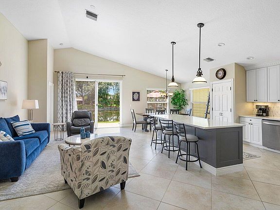 Discover waterfront living at its finest in this meticulously maintained three-bedroom, two-bath concrete block and stucco home. Nestled along miles of navigable waterways, it's a paradise for boating enthusiasts and water sports lovers alike, offering direct access from your backyard. Step inside to find a newly remodeled kitchen (2021) ready to inspire culinary adventures, while a new roof (2022) provides peace of mind for years to come. The kitchen features a beautiful island, stainless steel appliances and pantry! With a two-car garage and numerous upgrades throughout! This home seamlessly blends comfort, style, and functionality. Embrace the waterfront lifestyle you've always dreamed of. Welcome to your oasis! Low HOA fee includes basic cable, community pool and tennis courts! The 2nd bedroom is currently being used as a den, but it does have a closet. There is a Murphy Bed system with two twin beds, that is for sale.